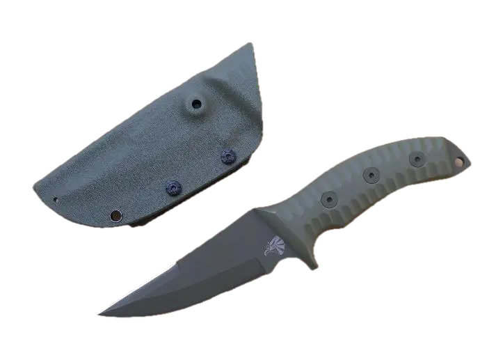 Vihreä MDE Fighter OD on väritykseltään suunniteltu sopimaan maastoon. Hinta sisältää veitsen ja kotelon.